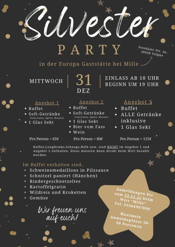 Vom 24.12. bis 26.12.2025 hat unser Wirt Mille geschlossen. Ab dem 27.12.2025 hat er dann
