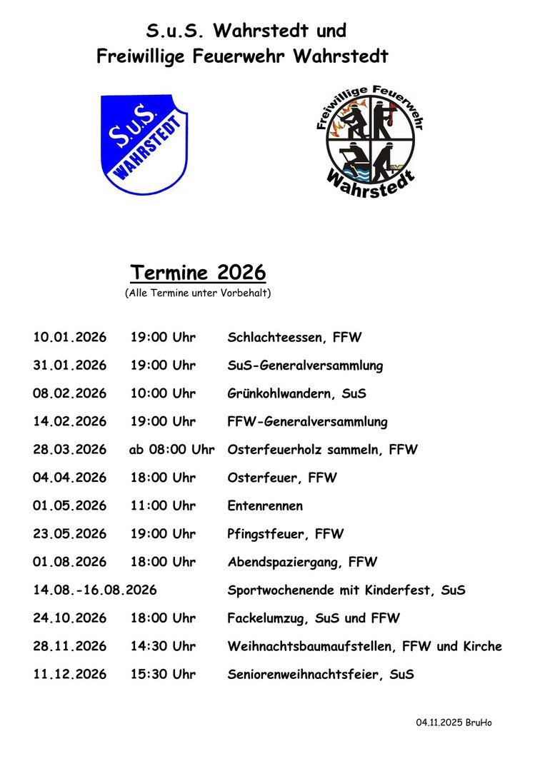 Der S.u.S. Wahrstedt informiert
